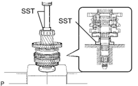(a) Using SST and a press, install the 4th driven gear to the output shaft.