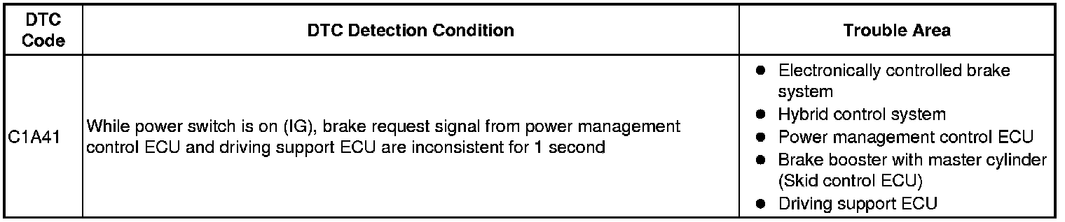 C1A41 - Brake Request Value Mismatch between ENG / EHV and Driving Support ECU