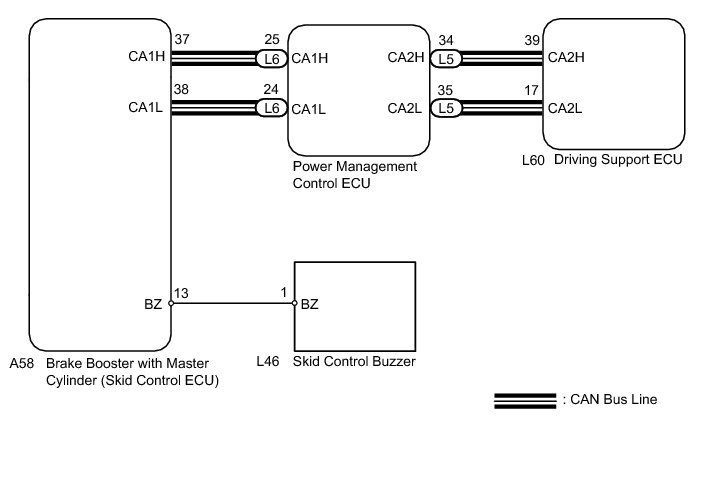 The driving support ECU sends a sounding signal to the brake booster with master cylinder (skid control ECU) to sound the skid control buzzer.