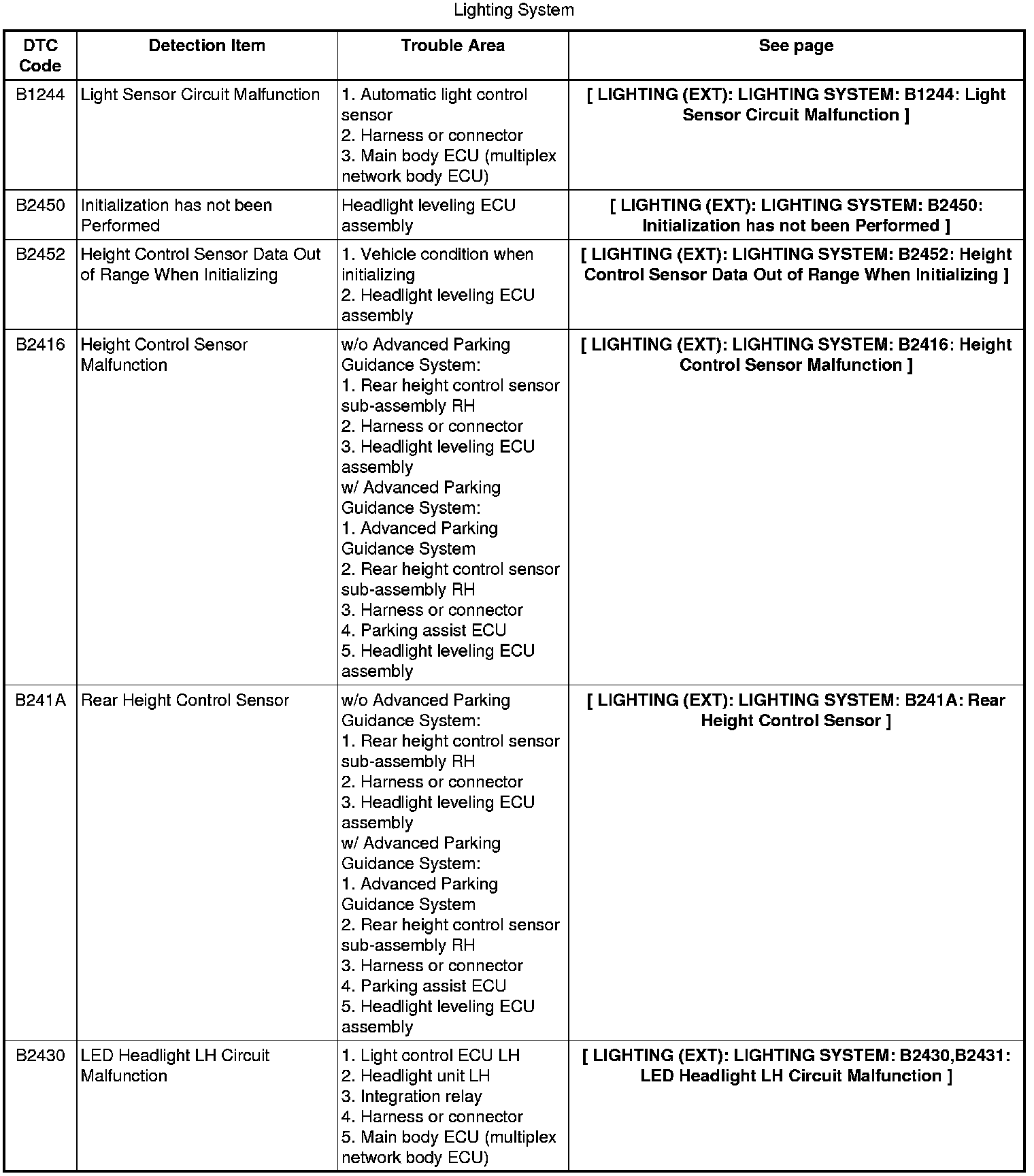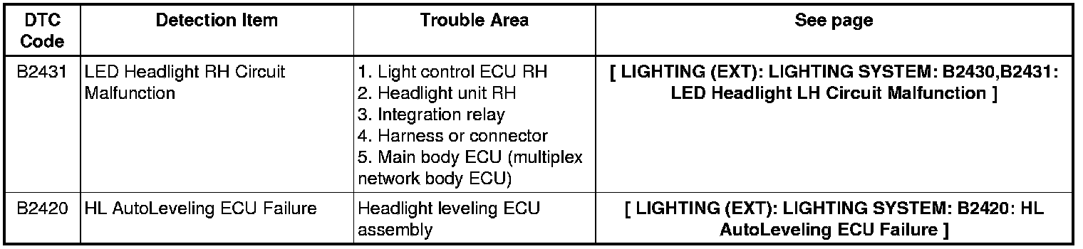 LIGHTING (EXT): LIGHTING SYSTEM: DIAGNOSTIC TROUBLE CODE CHART