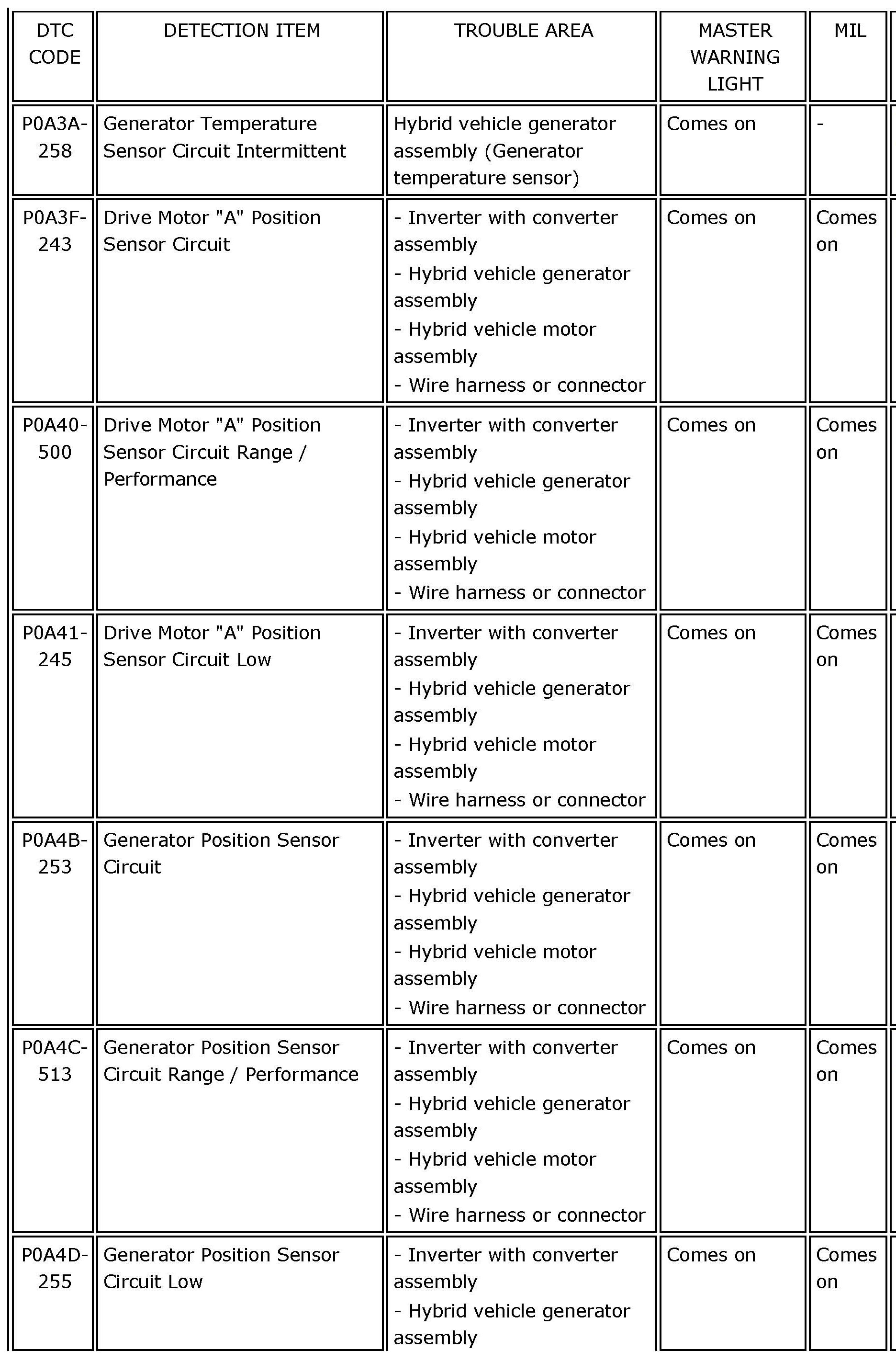 P0A3A-258 - P0A4D-255: