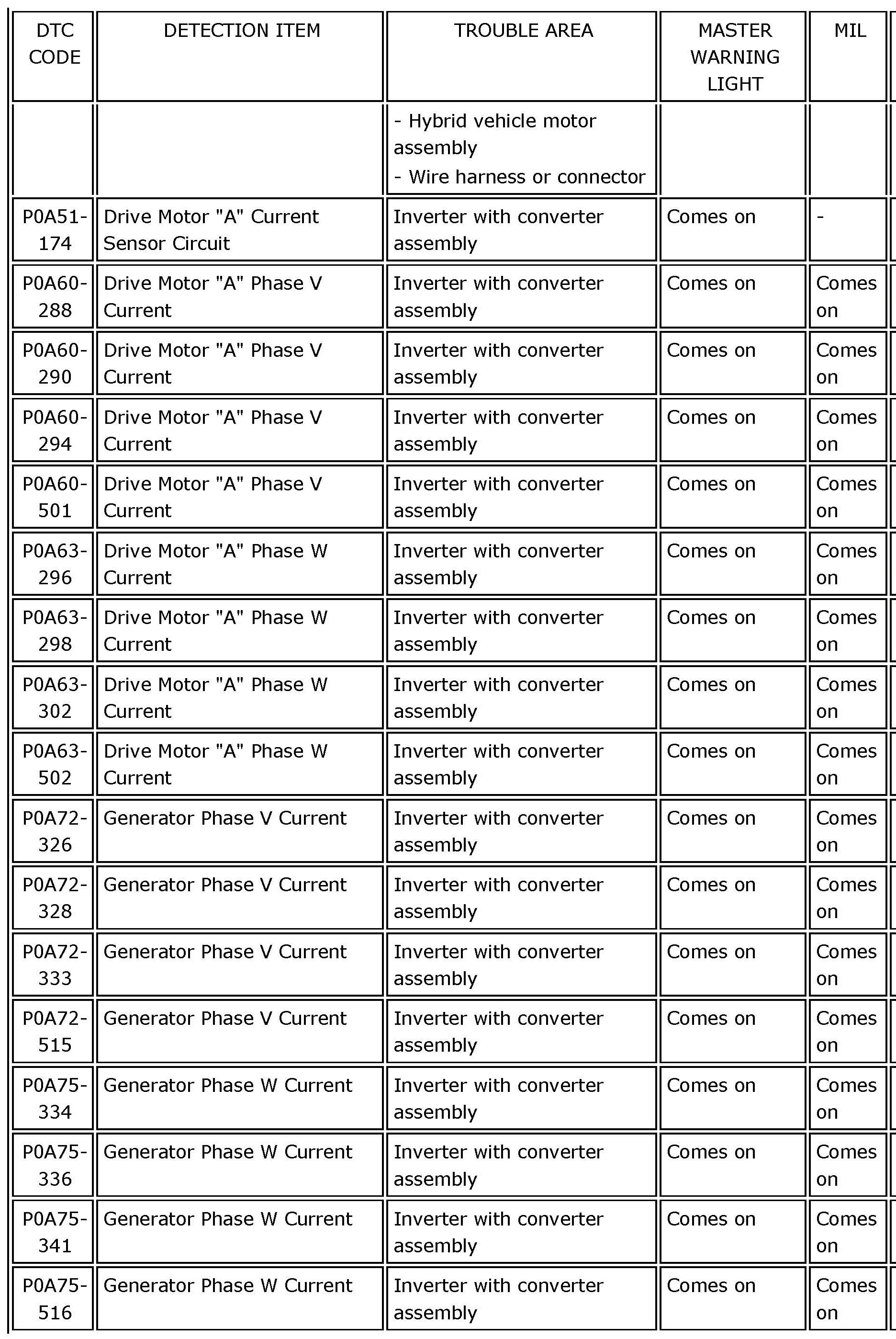 P0A51-174 - P0A75-516:
