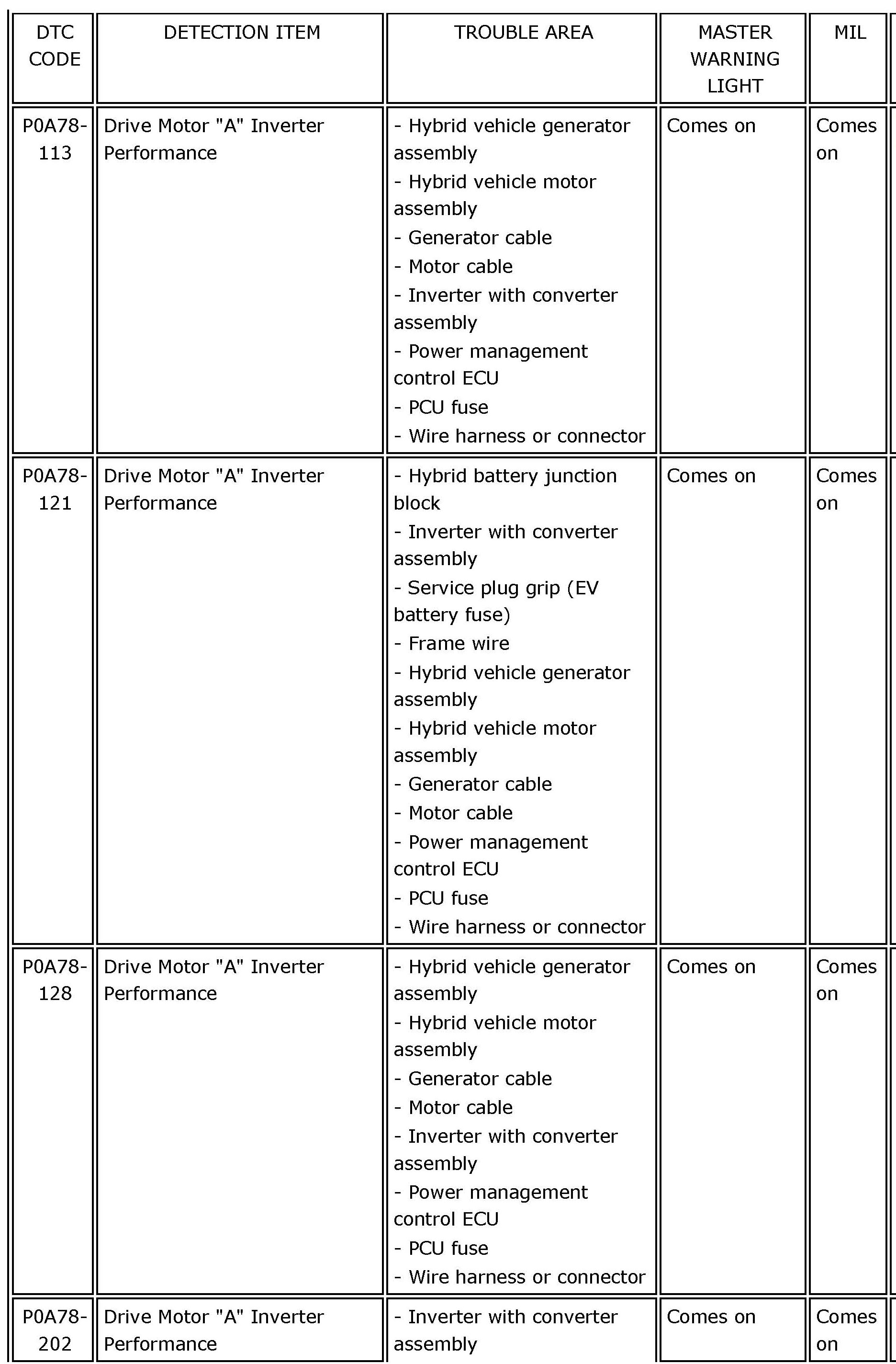 P0A78-113 - P0A78-202: