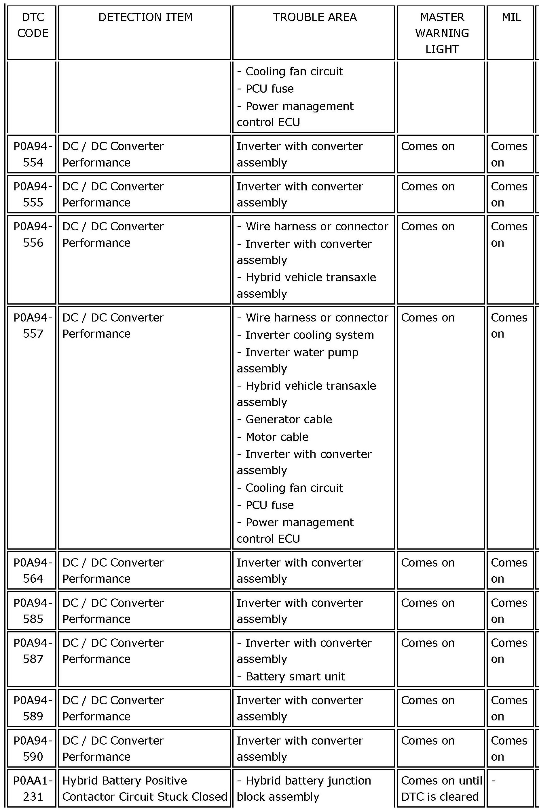P0A94-554 - P0AA1-231: