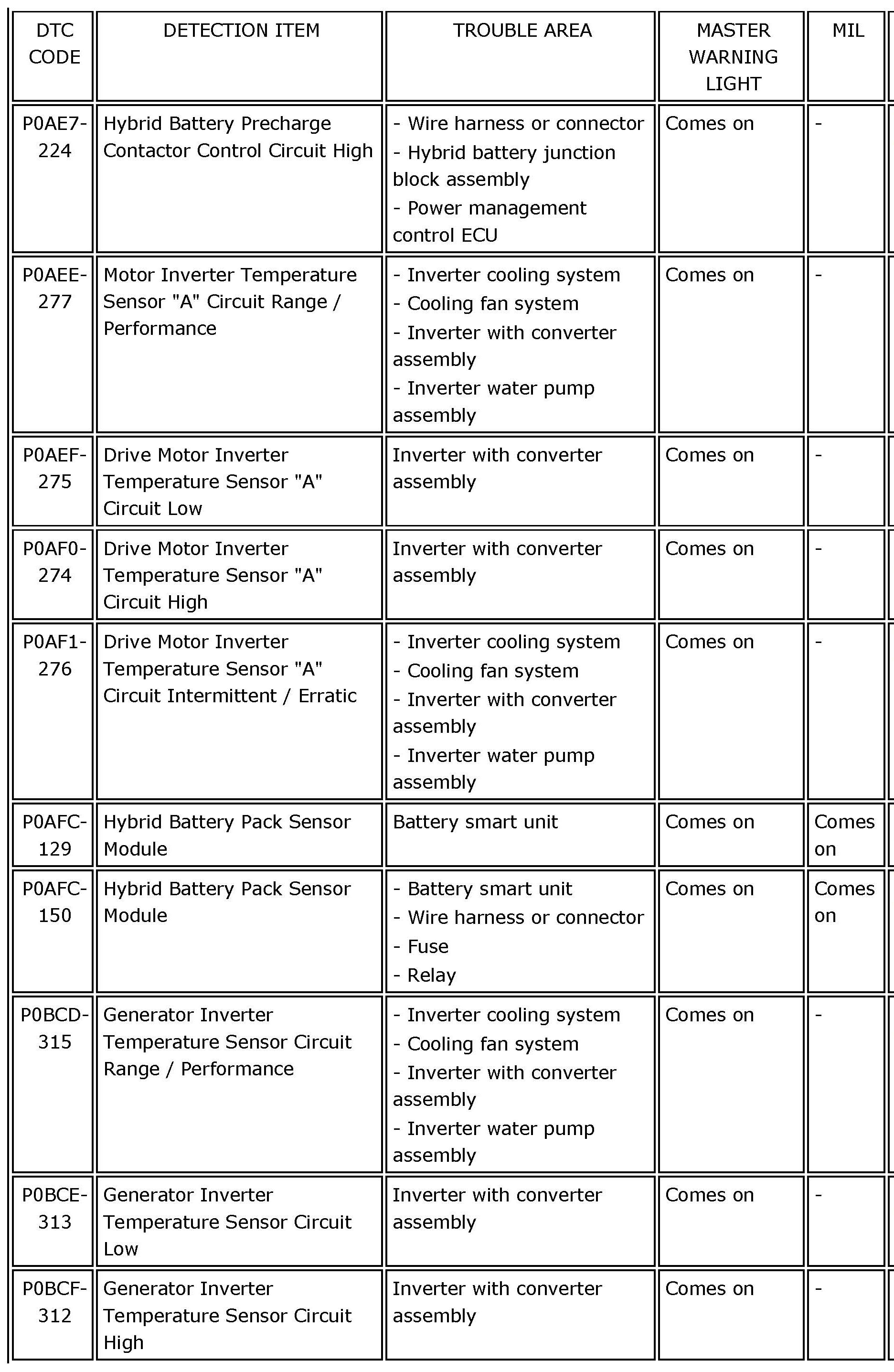 P0AE7-224 - P0BCF-312: