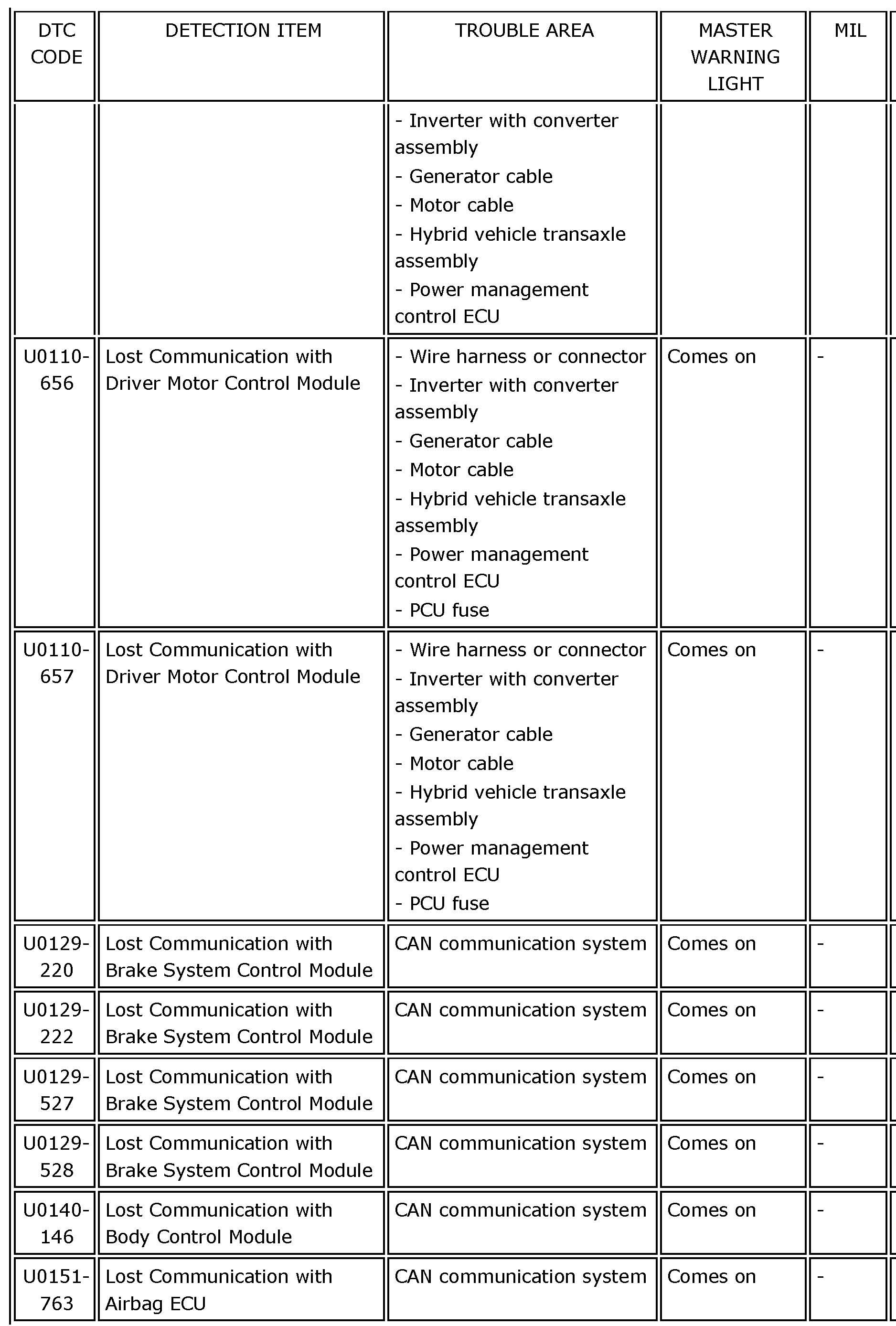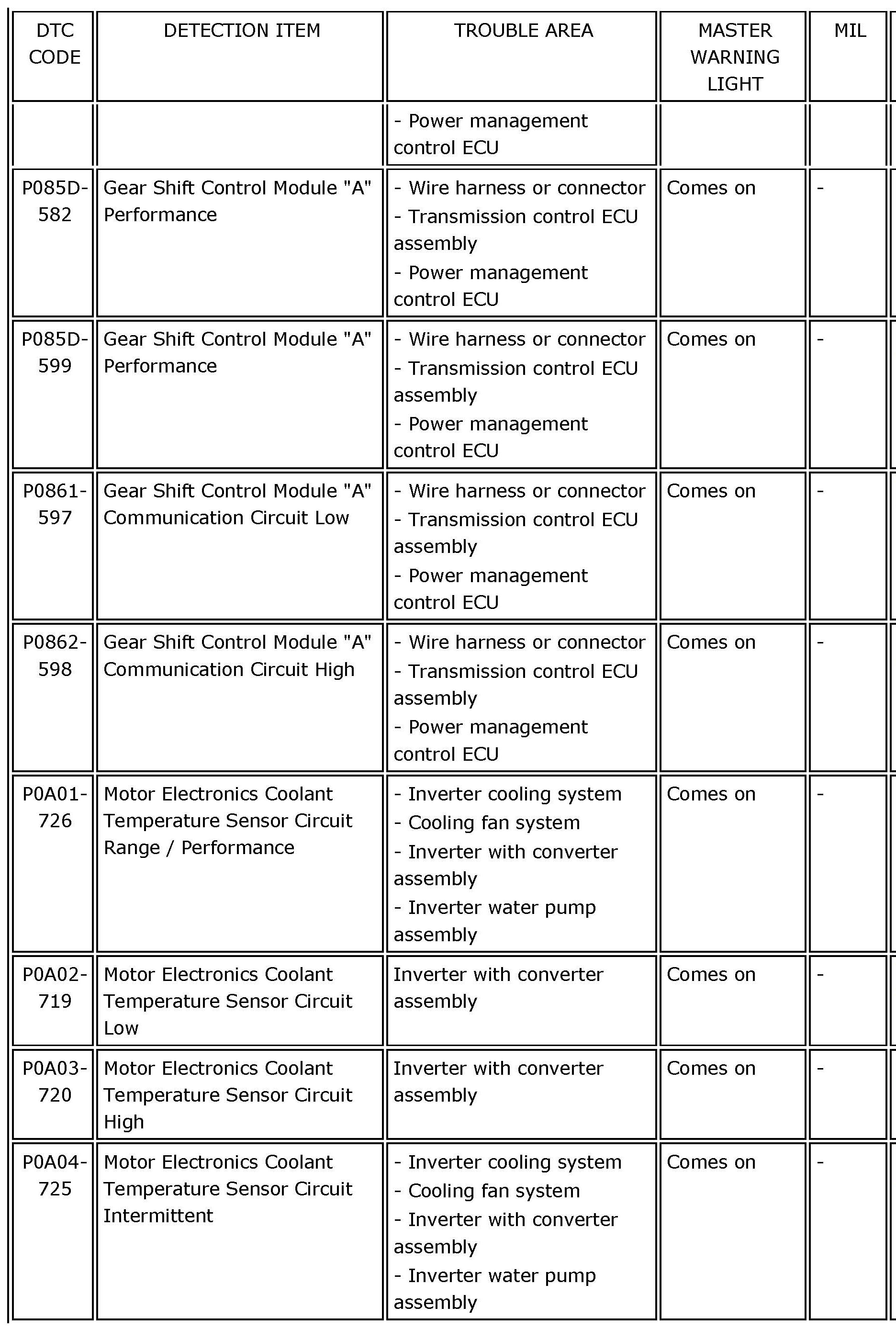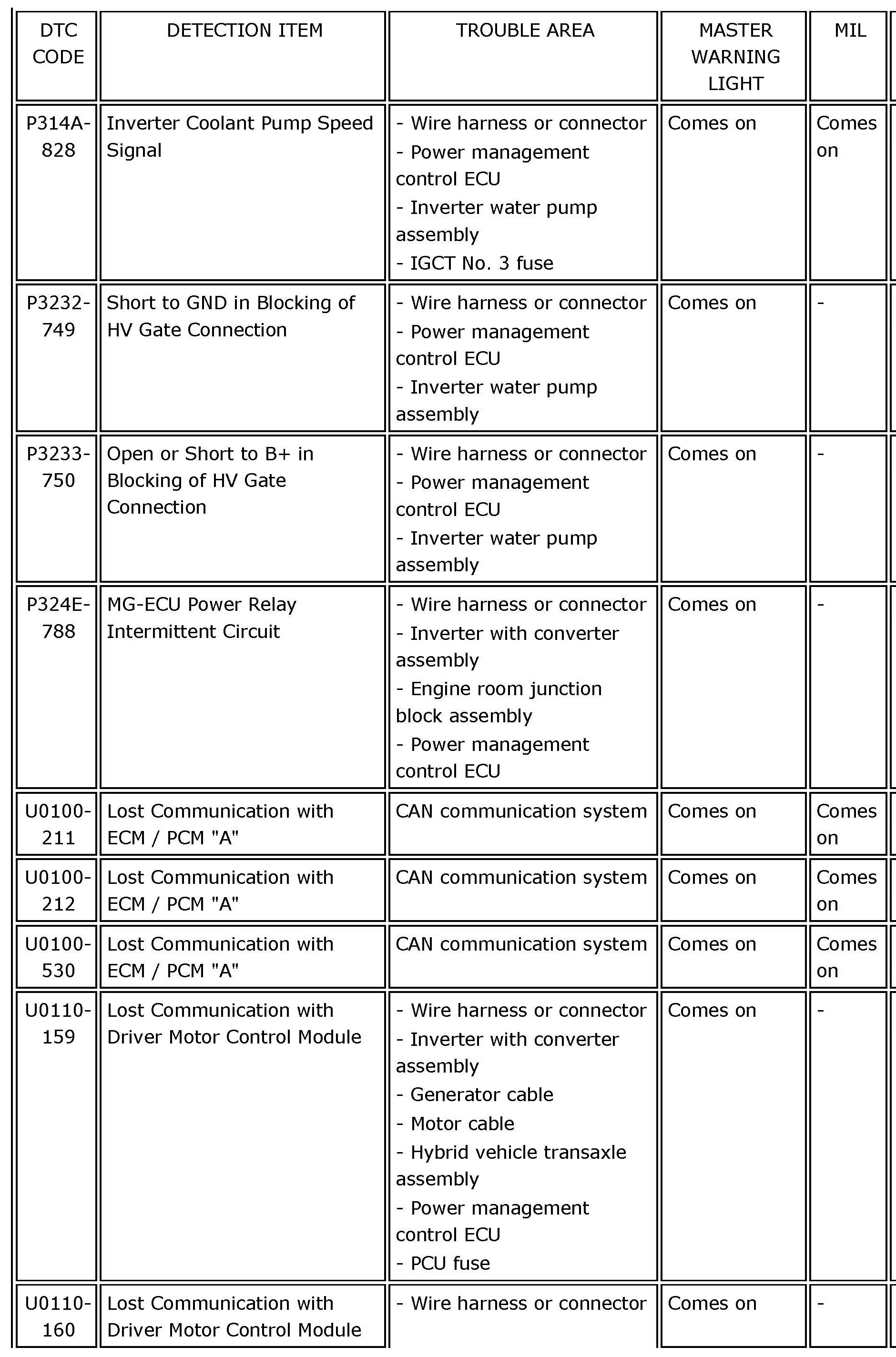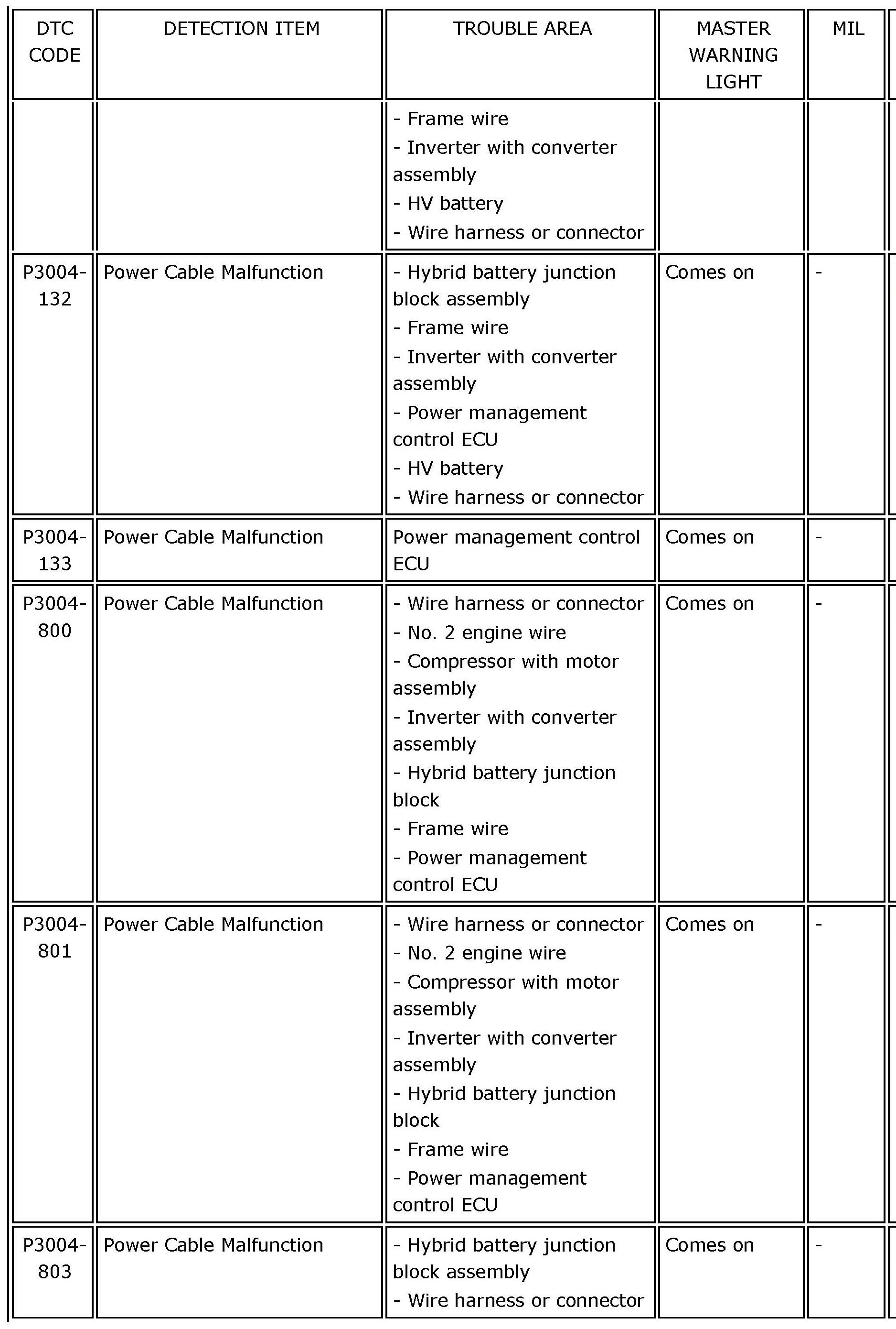 HYBRID VEHICLE CONTROL: HYBRID CONTROL SYSTEM:DIAGNOSTIC TROUBLE CODE CHARTP0069-273 - P060B-135: