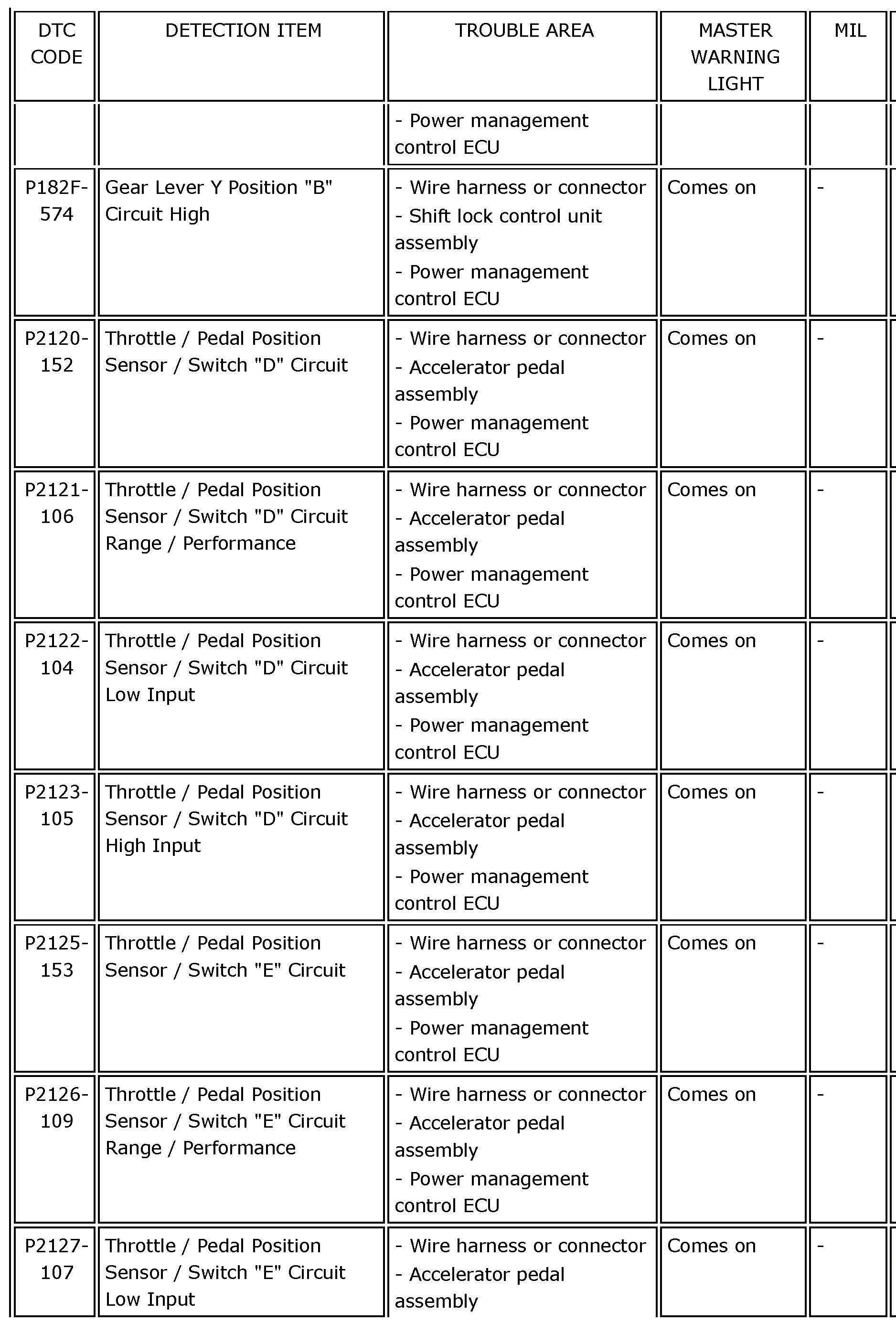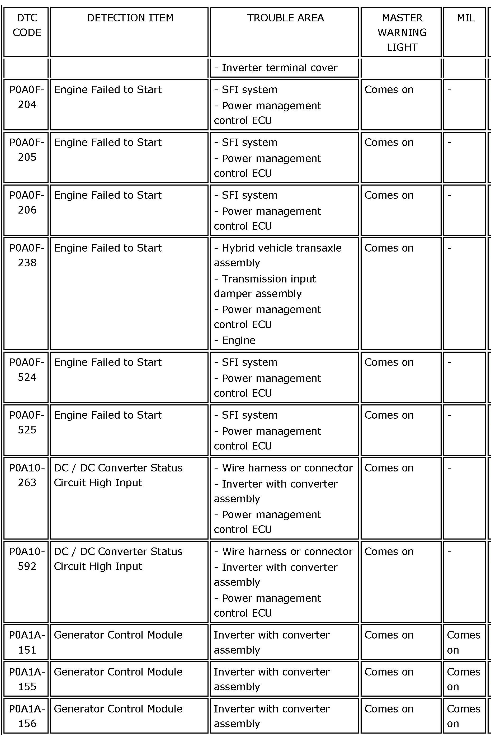 P0A0F-204 - P0A1A-156: