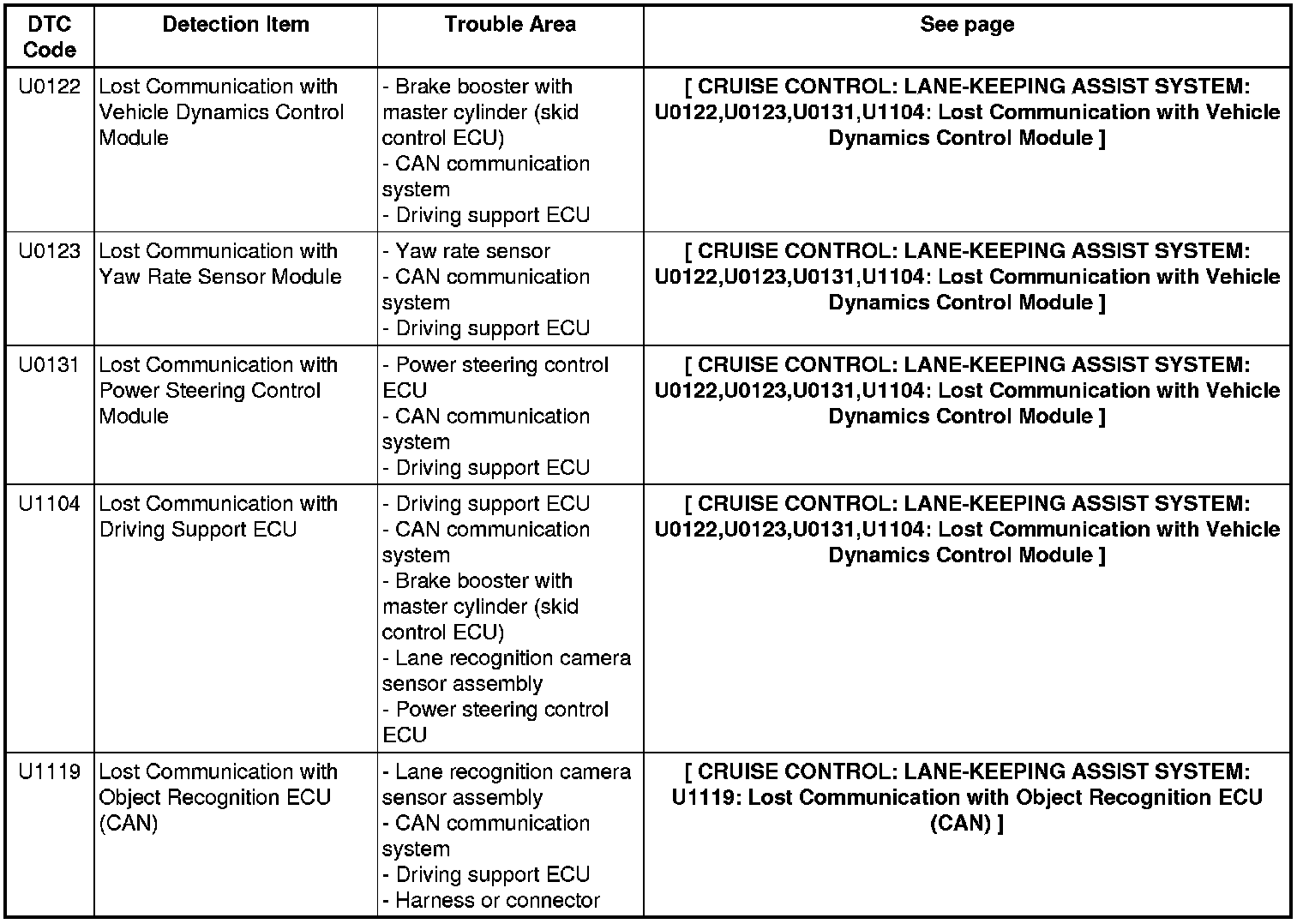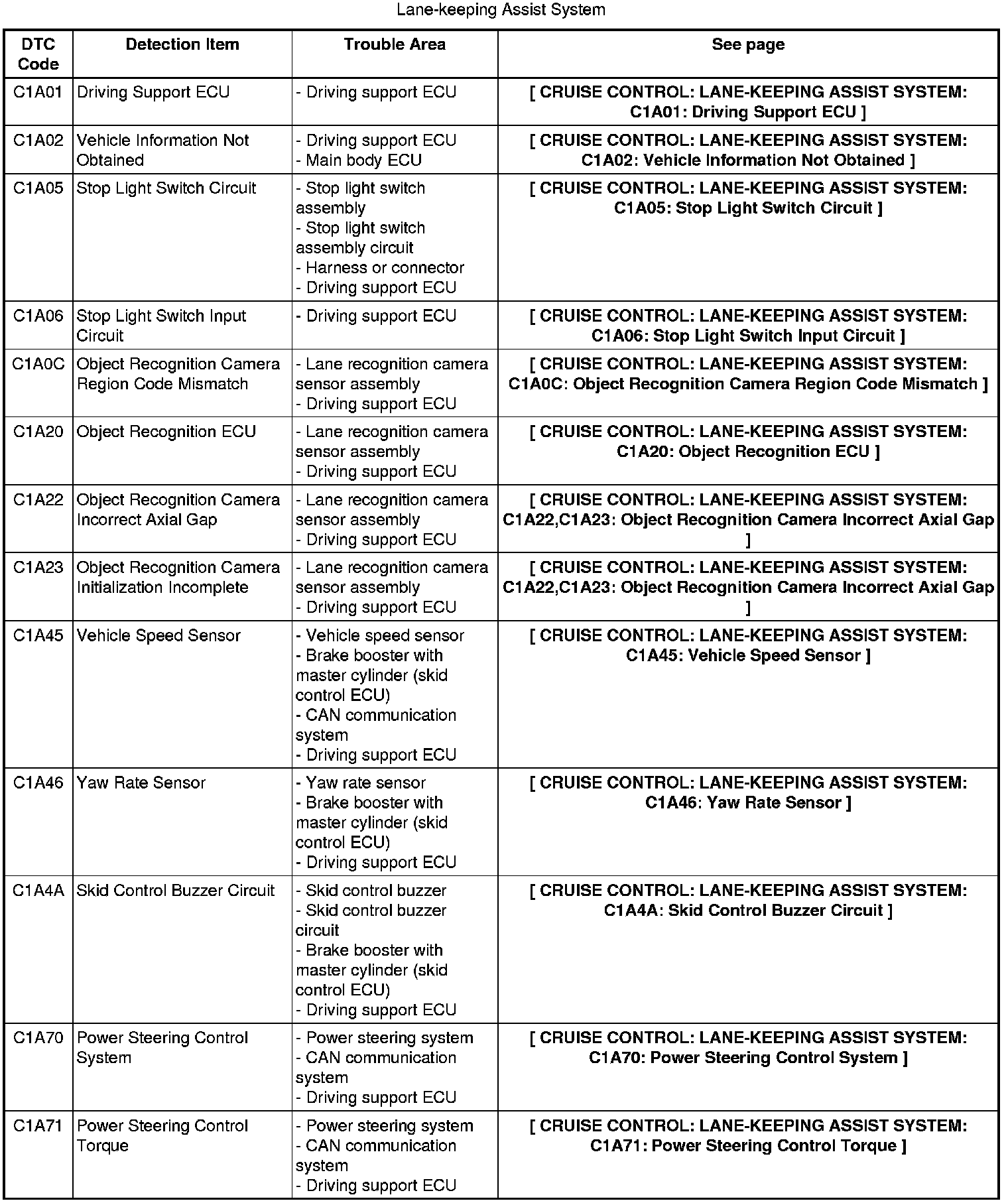CRUISE CONTROL: LANE-KEEPING ASSIST SYSTEM: DIAGNOSTIC TROUBLE CODE CHART