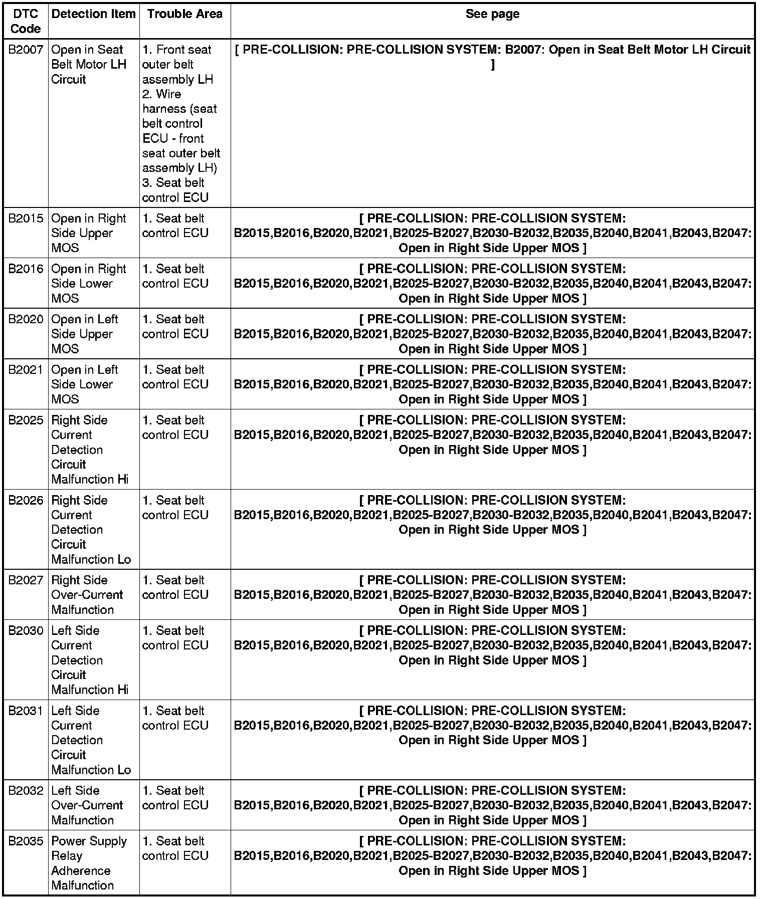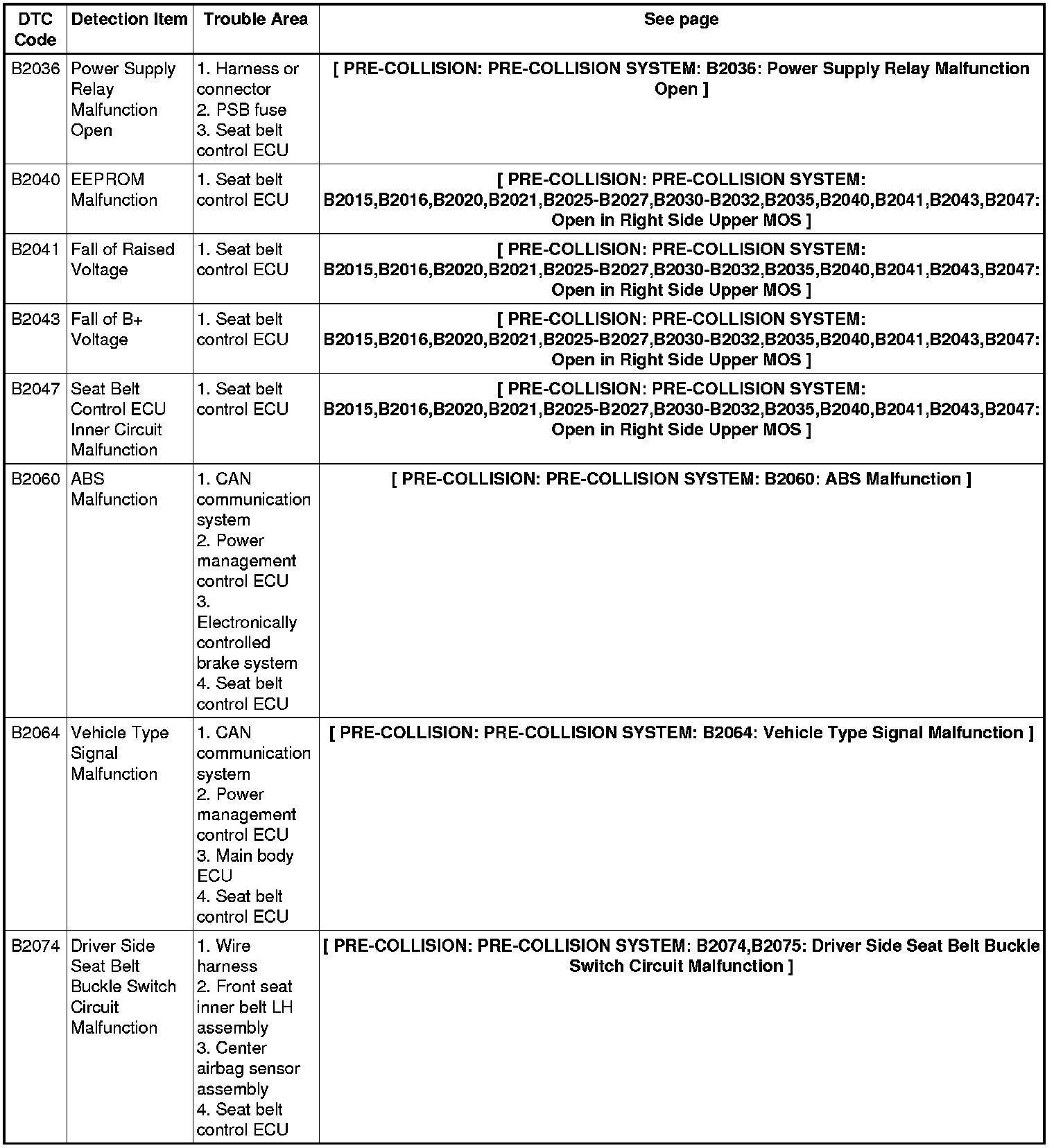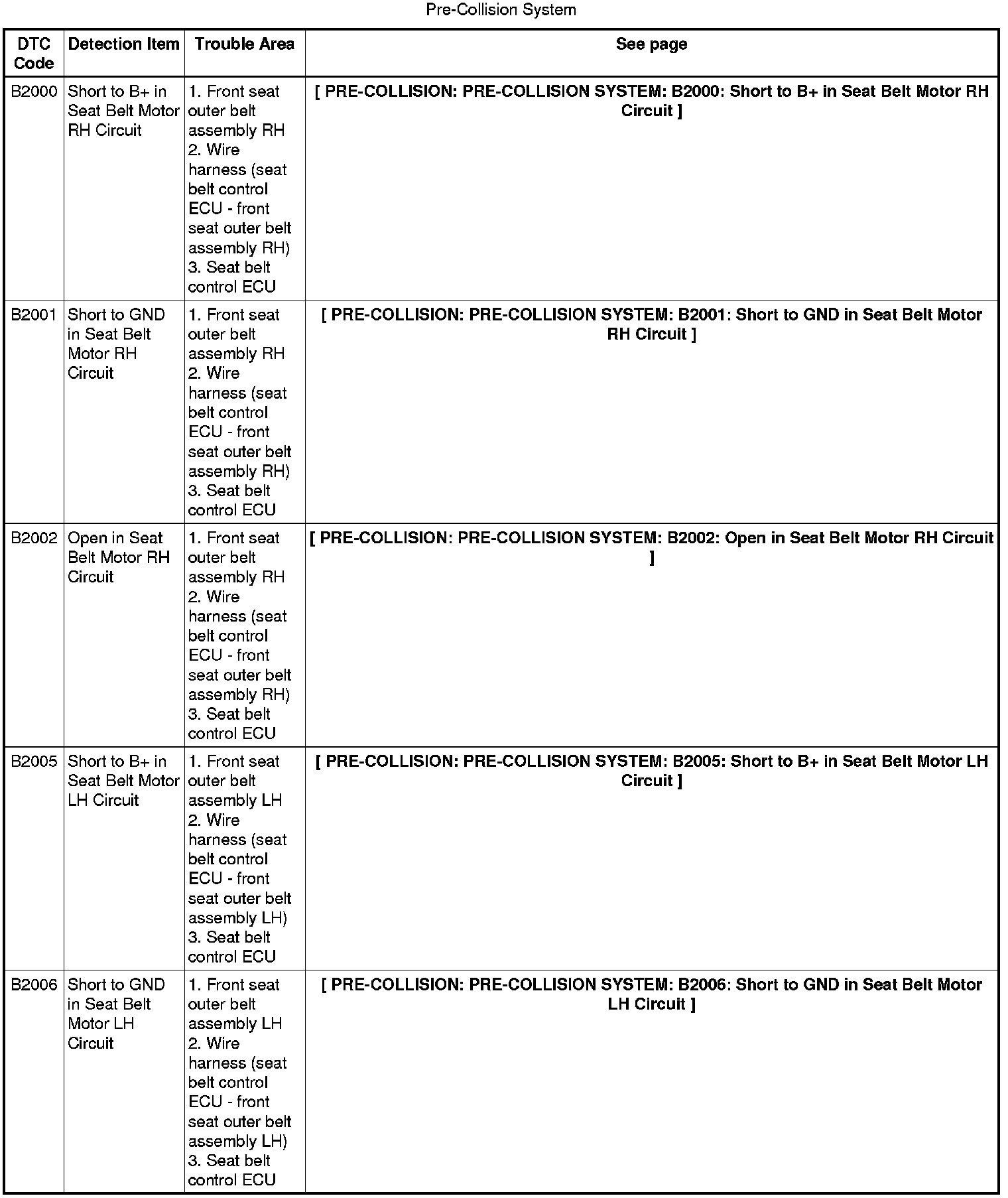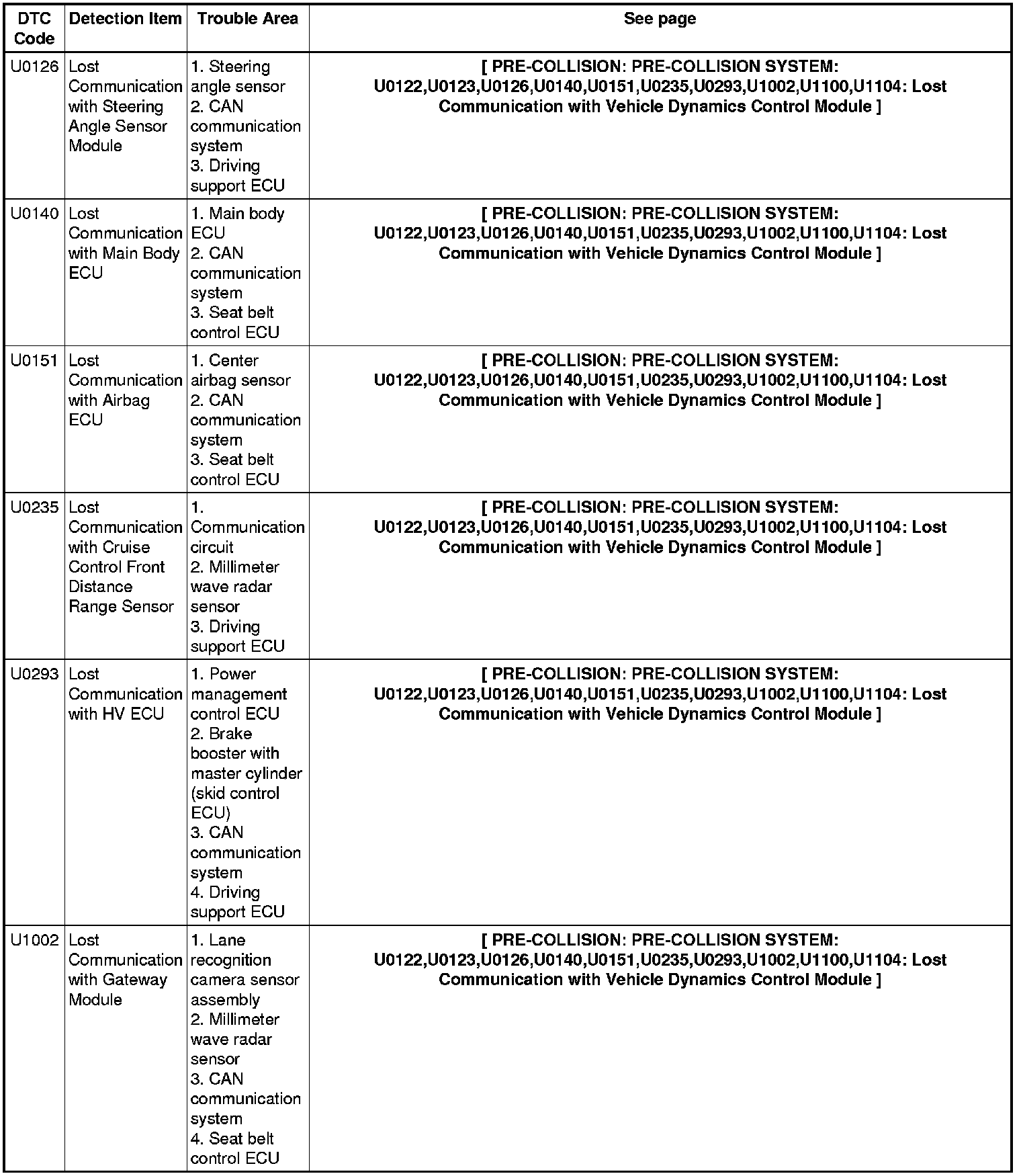 PRE-COLLISION: PRE-COLLISION SYSTEM: DIAGNOSTIC TROUBLE CODE CHART