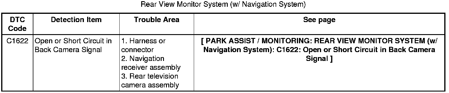 PARK ASSIST / MONITORING: REAR VIEW MONITOR SYSTEM (w/ Navigation System): DIAGNOSTIC TROUBLE CODE CHART