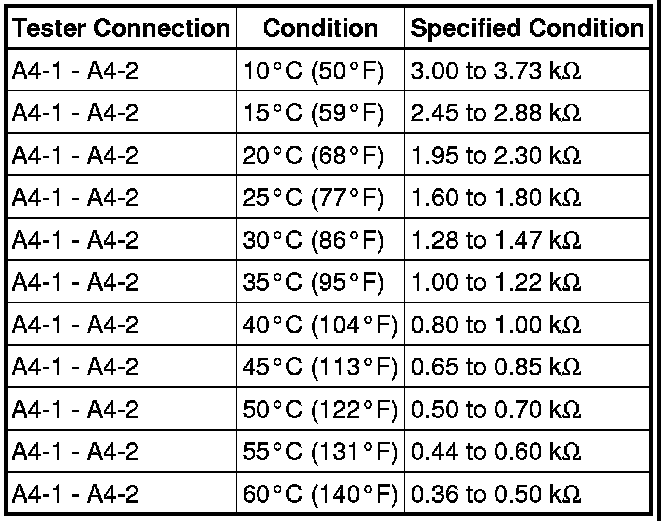 The ambient temperature sensor is installed in front of the condenser. It detects the ambient temperature to control air conditioning AUTO mode. This sensor is connected to the A/C amplifier and detects fluctuations in the ambient temperature. This data is used for controlling the cabin temperature. The sensor sends a signal to the A/C amplifier. The resistance of the ambient temperature sensor changes in accordance with the ambient temperature. As the temperature decreases, the resistance increases. As the temperature increases, the resistance decreases.