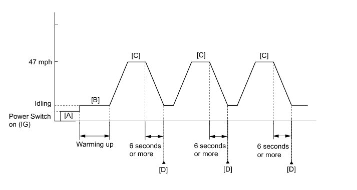 8. Drive the vehicle at 47 mph (75 km/h), and then decelerate the vehicle by releasing the accelerator pedal for 6 seconds or more to perform the fuel-cut [C].