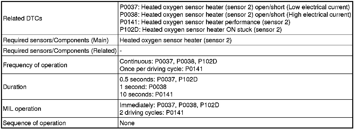 Heated Oxygen Sensor Heater Range Check (P0037, P0038 and P102D):