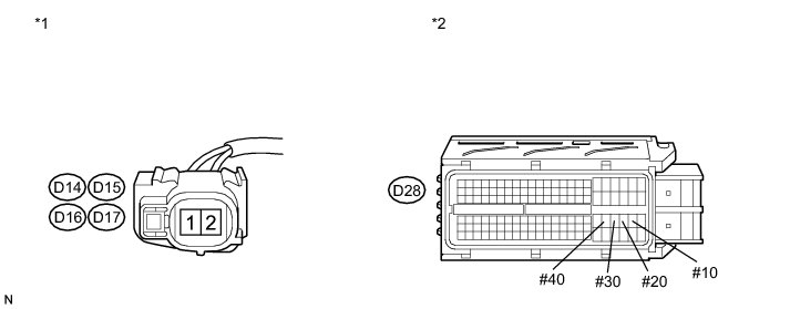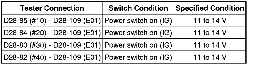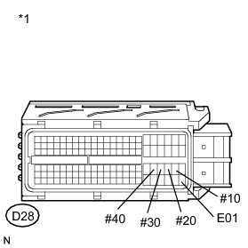 10. INSPECT ECM TERMINAL OF MISFIRING CYLINDER (#10, #20, #30 AND/OR #40 VOLTAGE)