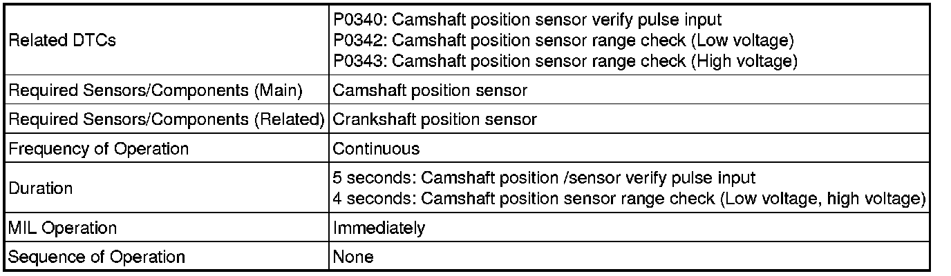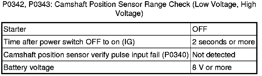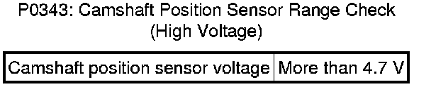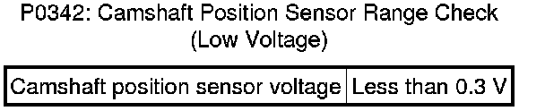 P0342, P0343: Camshaft Position Sensor Range Check (Low Voltage, High Voltage)