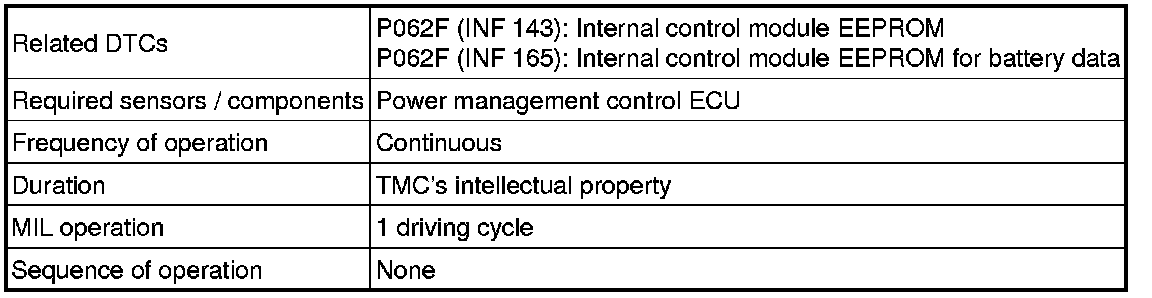 HYBRID / BATTERY CONTROL: HYBRID CONTROL SYSTEM: P062F-143,P062F-165: EEPROM Malfunction