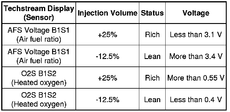 * Following the Control the Injection Volume for A/F Sensor procedure enables technicians to check and graph the voltage outputs of both the air fuel ratio and heated oxygen sensors.
