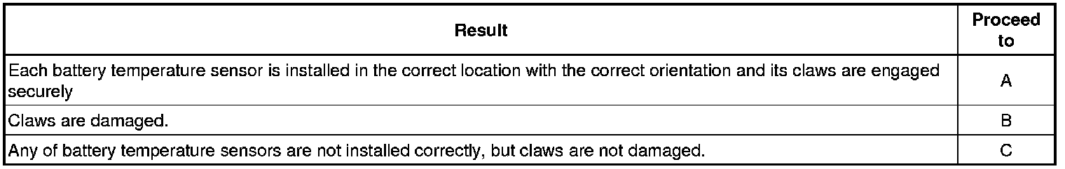 Each battery temperature sensor is installed in the correct location with the correct orientation and its claws are engaged securely.