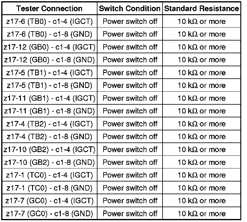 There are no open or short circuits in the wire harness and connectors. There are no short circuits to other wire harnesses.