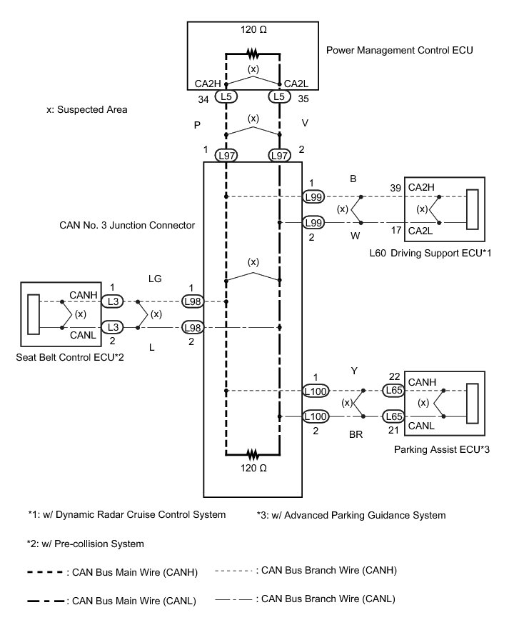 * The power management control ECU will store this DTC when no signals can be received from the ECUs that have been memorized as those that are connected to the CAN No. 2 bus.