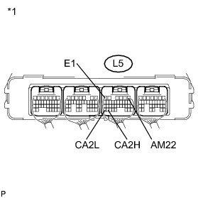 (b) Disconnect the connector that includes terminals CANH and CANL from the ECU to which the bus wire shorted to +B or GND is connected.