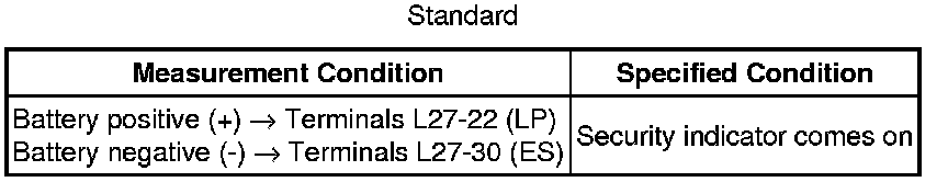 (a) Apply battery voltage from the wire harness back side between the specified terminals of the indicator, and check the lighting condition of the security indicator.