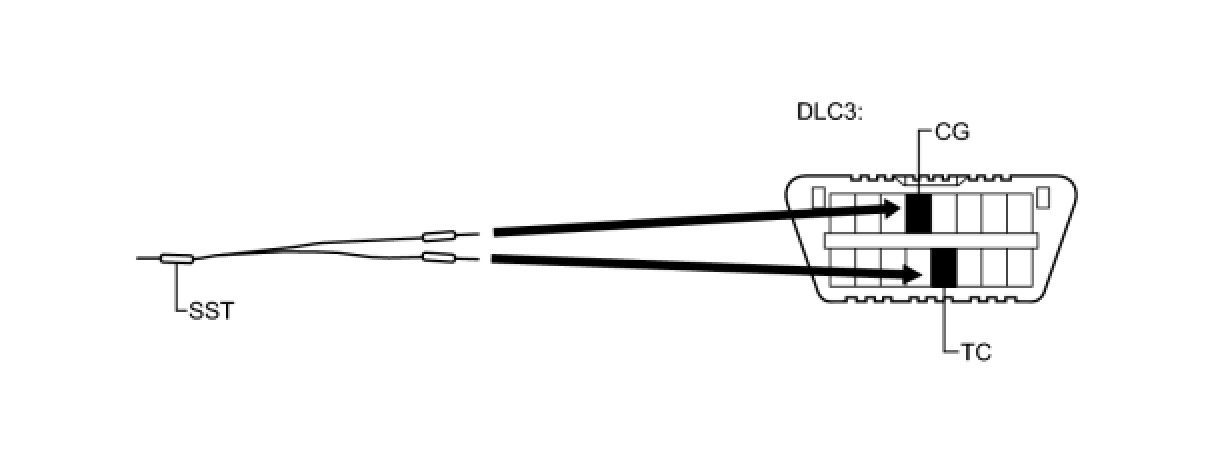 (1) Using SST, connect terminals TC and CG of the DLC3.