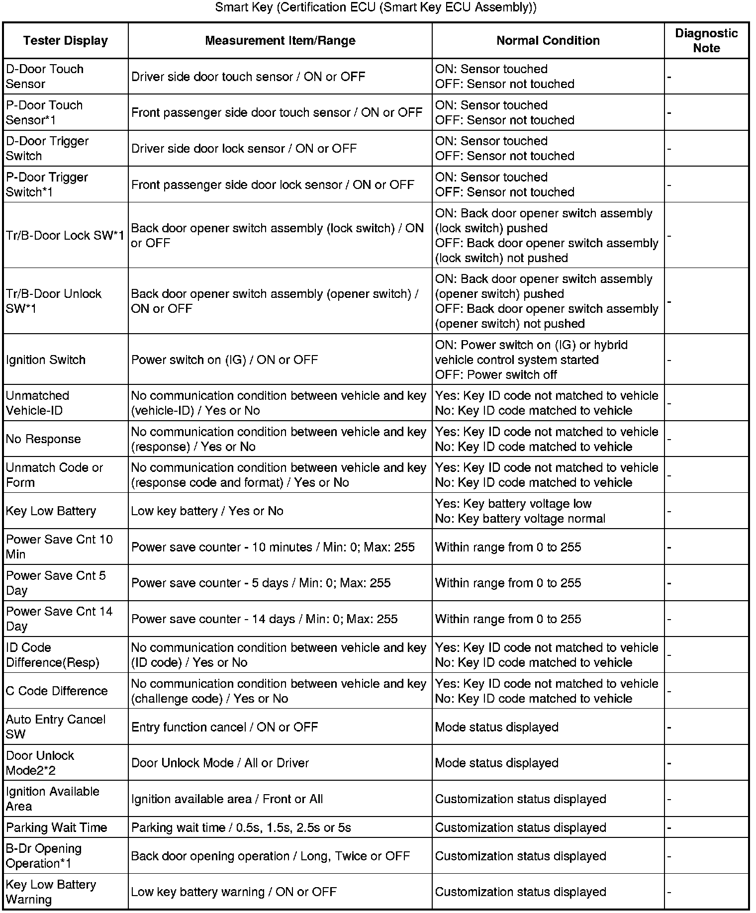 THEFT DETERRENT / KEYLESS ENTRY: SMART KEY SYSTEM (for Entry Function): DATA LIST / ACTIVE TEST