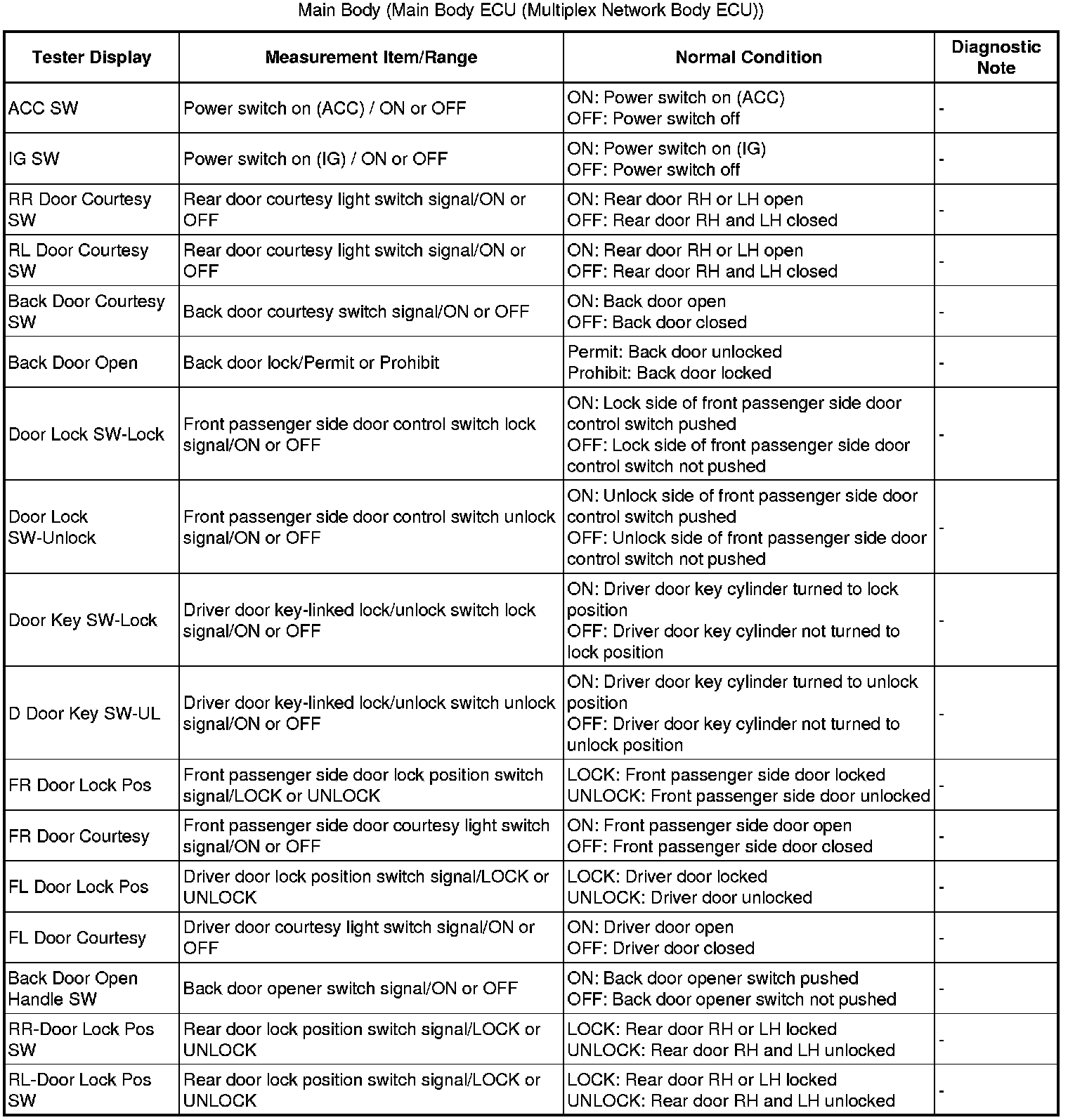 Using the Techstream to read the Data List allows the values or states of switches, sensors, actuators and other items to be read without removing any parts. This non-intrusive inspection can be very useful because intermittent conditions or signals may be discovered before parts or wiring is disturbed. Reading the Data List information early in troubleshooting is one way to save diagnostic time.