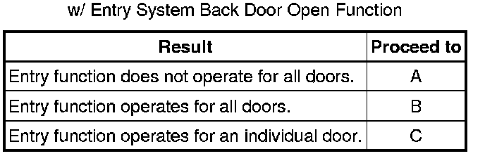 D -- GO TO OTHER PROBLEM (Proceed to Back Door Entry Lock and Unlock Functions do not Operate) Back Door Entry Lock And Unlock Functions Do Not Operate