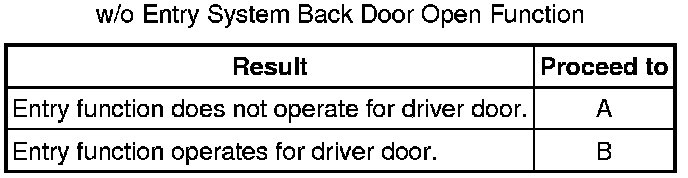 B -- GO TO OTHER PROBLEM (Proceed to Driver Side Door Entry Lock and Unlock Functions do not Operate) Driver Side Door Entry Lock and Unlock Functions Do Not Operate