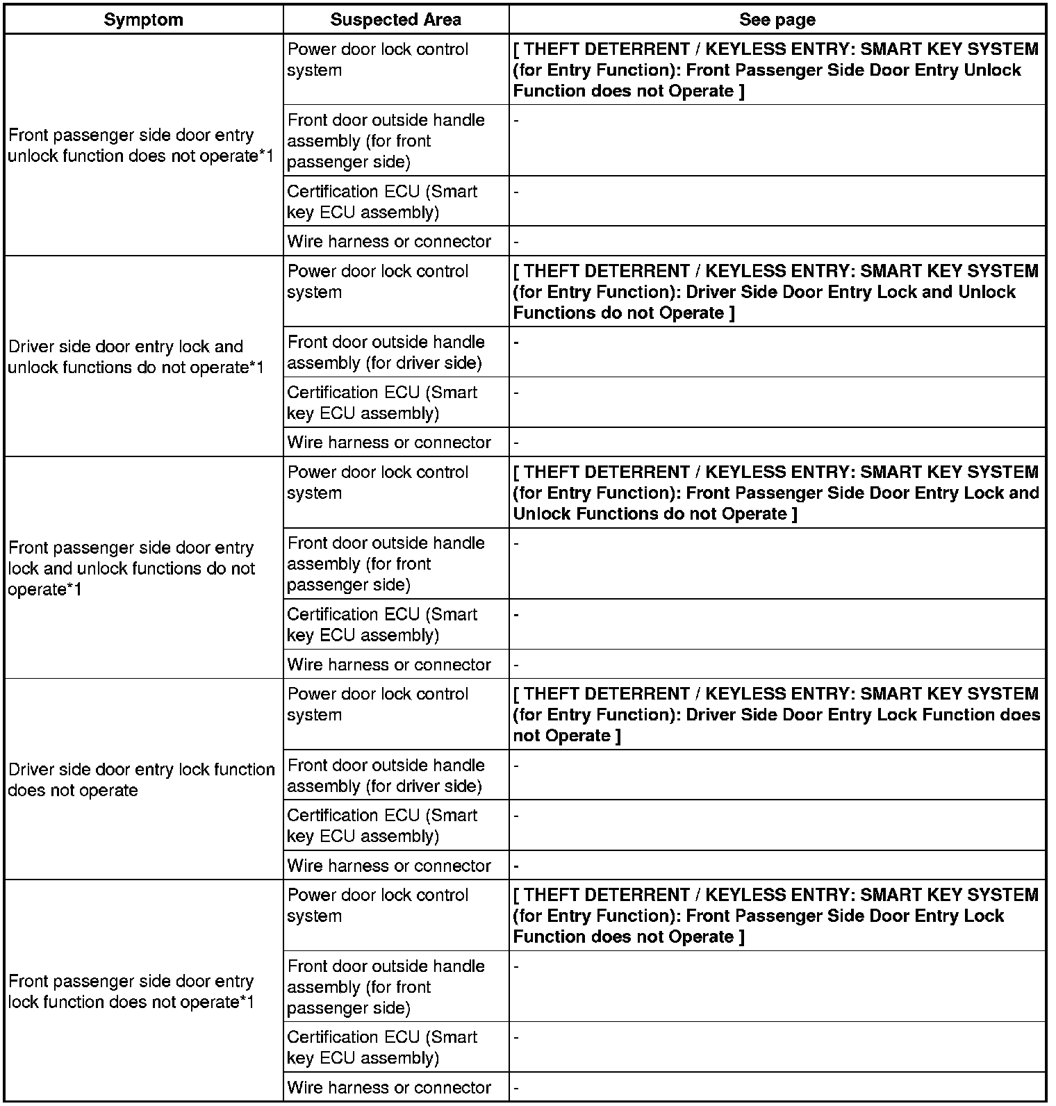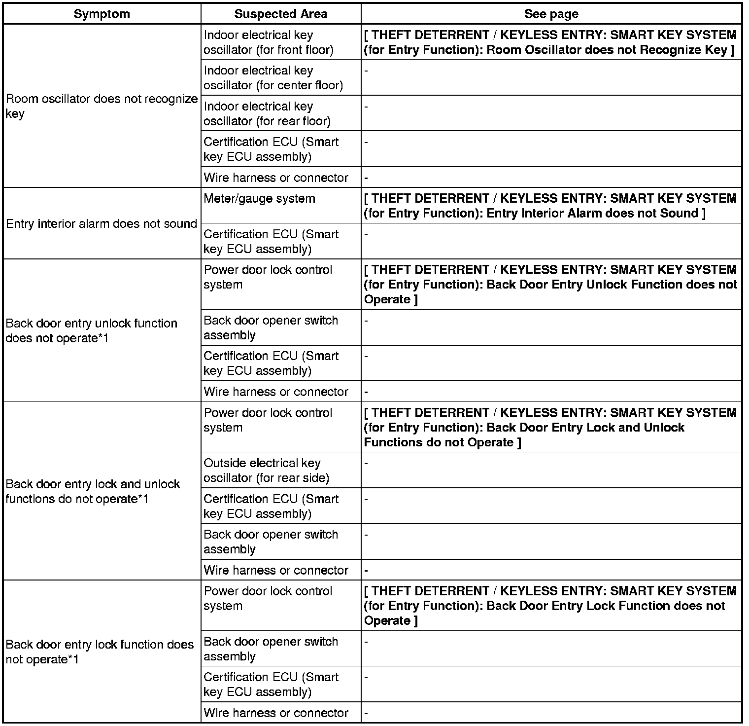 THEFT DETERRENT / KEYLESS ENTRY: SMART KEY SYSTEM (for Entry Function): PROBLEM SYMPTOMS TABLE
