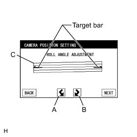 * When only bumper reference line position adjustment is required after servicing the vehicle, CAMERA POSITION SETTING (ROLL ANGLE ADJUSTMENT) is unnecessary. Select "NEXT".