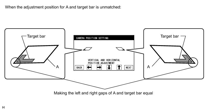* If the left and right parallelograms (A) and the corners of the target bars (C) do not match, make the gaps between each parallelogram (A) and the target bars equal on the left and right sides.