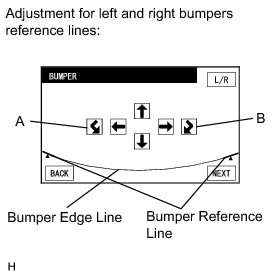 If the bumper reference lines do not overlap or contact the bumper edge line, select "L/R" to perform bumper reference line position adjustment (individual adjustment).