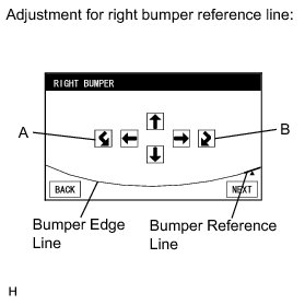 When the right bumper reference line overlaps or contacts the bumper edge line in the bumper reference line position adjustment (individual adjustment) step, select "NEXT".