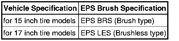 * EPS brush refers to the type of motor used for the EPS system (with brushes or brushless).