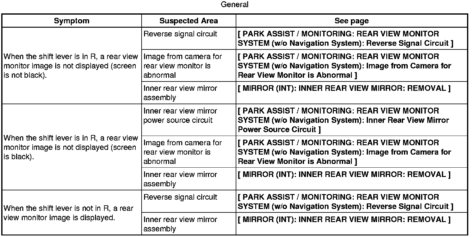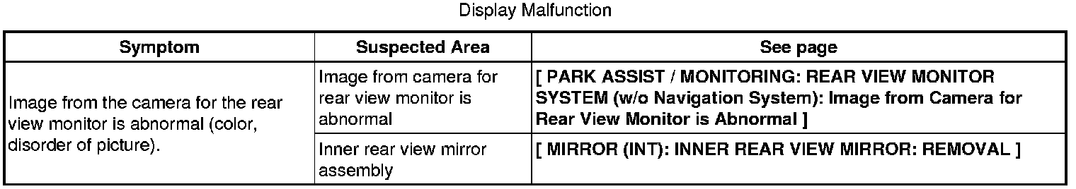 PARK ASSIST / MONITORING: REAR VIEW MONITOR SYSTEM (w/o Navigation System): PROBLEM SYMPTOMS TABLE