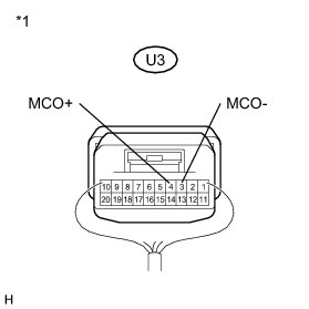 (d) Connect an oscilloscope to terminals 4 (MCO+) and 3 (MCO-) of the U3 map light assembly connector.