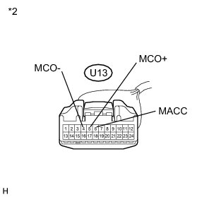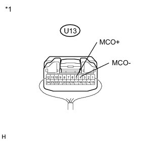 (d) Connect an oscilloscope to terminals 5 (MCO+) and 4 (MCO-) of the U13 map light assembly connector.