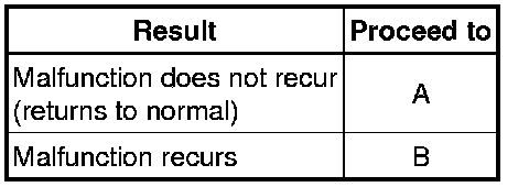 A -- PROCEED TO NEXT SUSPECTED AREA SHOWN IN PROBLEM SYMPTOMS TABLE Problem Symptoms Table