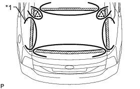 (1) Using a knife, cut away excess adhesive on the contact surfaces of the vehicle body, as shown in the illustration.