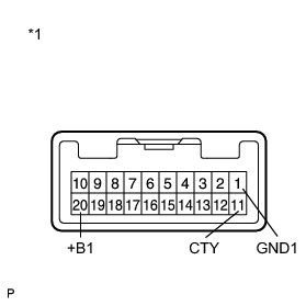 (1) Connect a positive (+) lead from the battery to terminal 20 (+B1) and a negative (-) lead to terminal 1 (GND1).