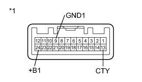 (1) Connect a positive (+) lead from the battery to terminal 24 (+B1) and a negative (-) lead to terminal 9 (GND1).