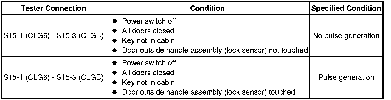 (b) Check for pulses according to the value(s) in the table below.