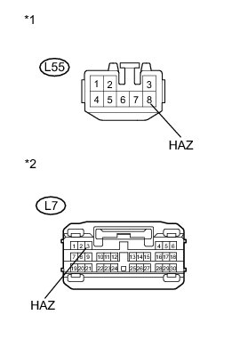 (a) Disconnect the L55 turn signal flasher assembly and L7 main body ECU (multiplex network body ECU) connectors.