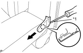 (a) Using a screwdriver wrapped with protective tape, disengage the claw and remove the center armrest hinge cover as shown in the illustration.