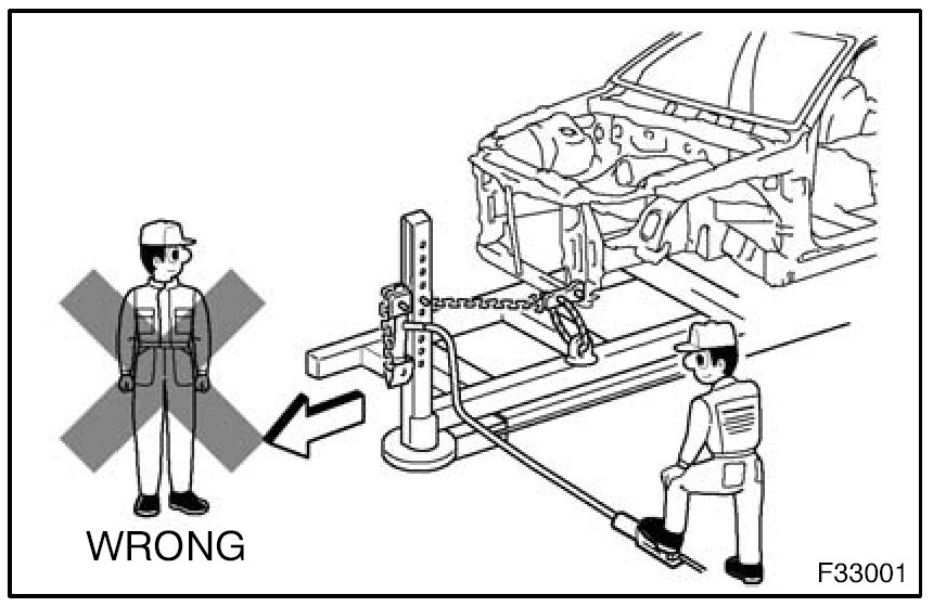 1. Make sure that the frame aligning machine does not affect undamaged areas when aligning the frame.