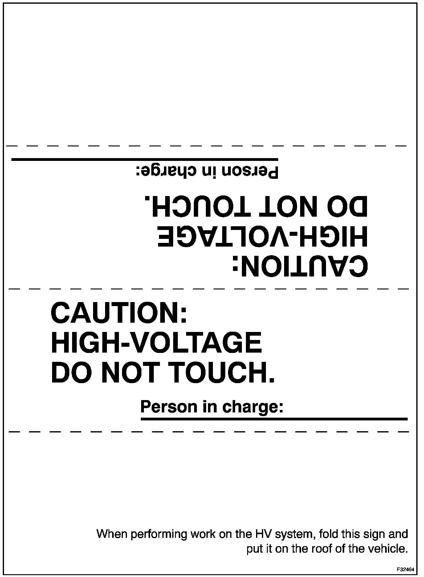 11. Use the "CAUTION: HIGH VOLTAGE. DO NOT TOUCH DURING OPERATION" sign to notify other technicians that the high-voltage system is being inspected and/or repaired.