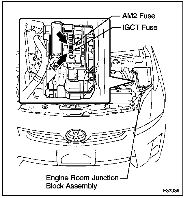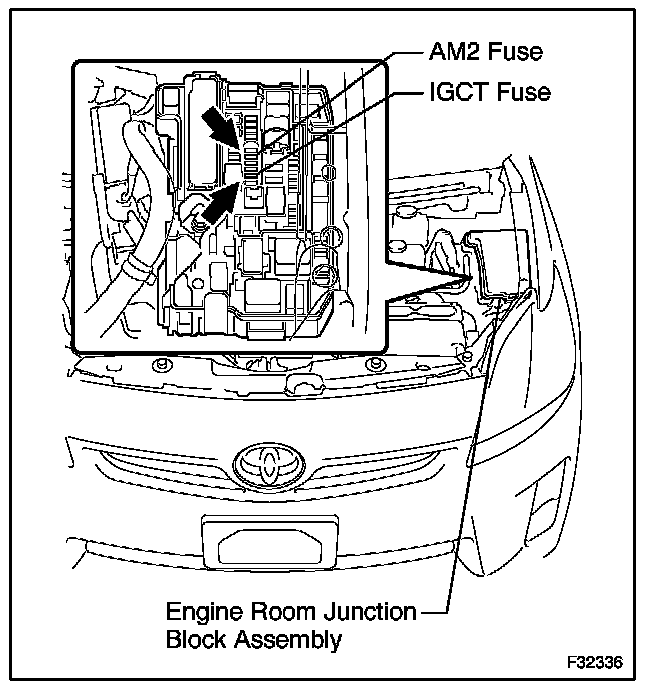 HINT: If the power switch cannot be turned off, remove the IGCT fuse and AM2 fuse from the engine room junction block assembly. Confirm that the READY Light is OFF.